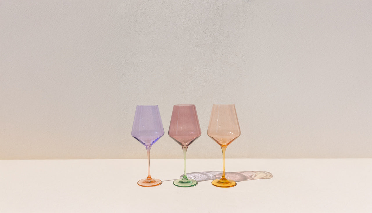 “The eclectic colors make a very strong statement and update any place setting! Also having different colors makes it easier at a dinner party not to confuse glasses!”